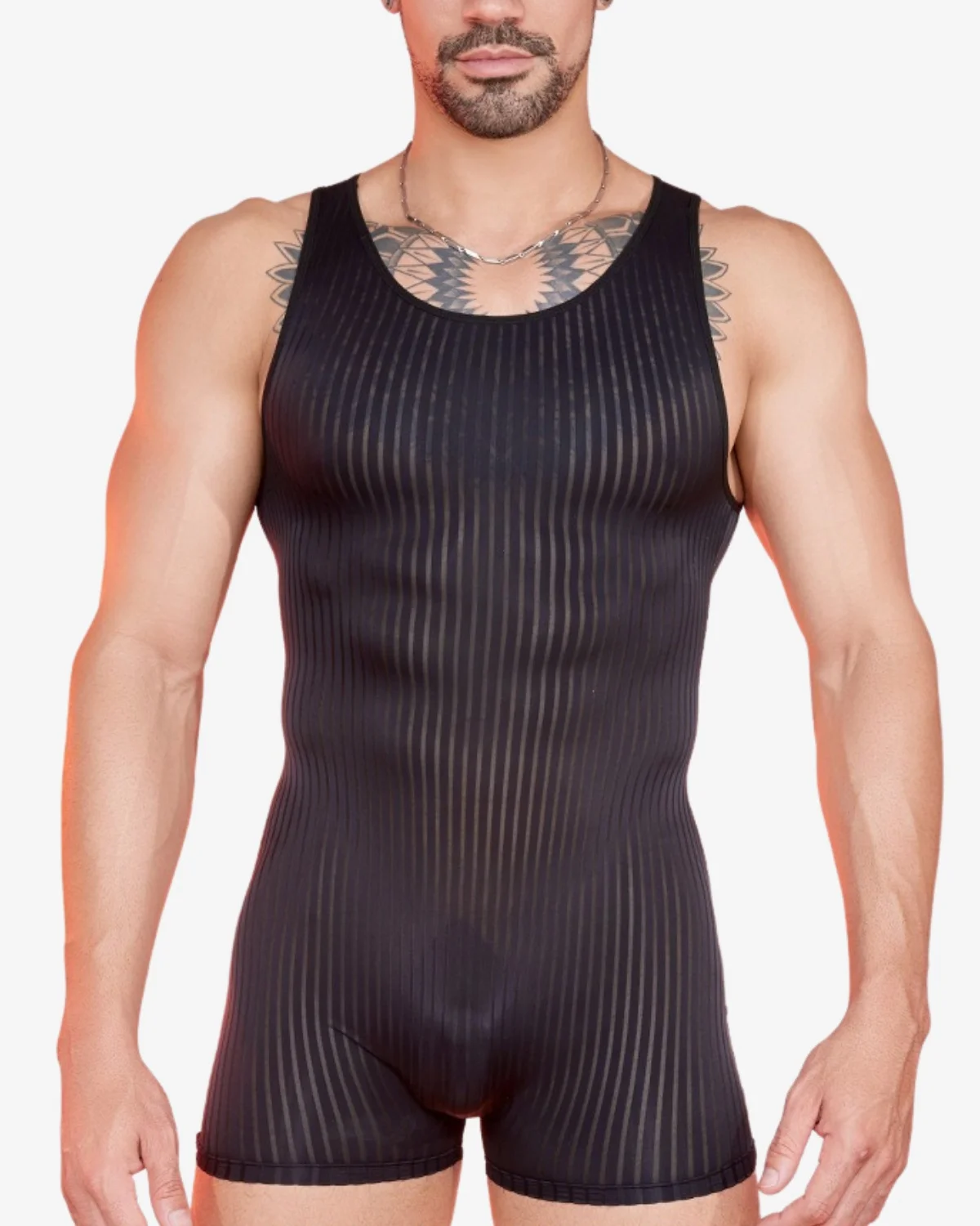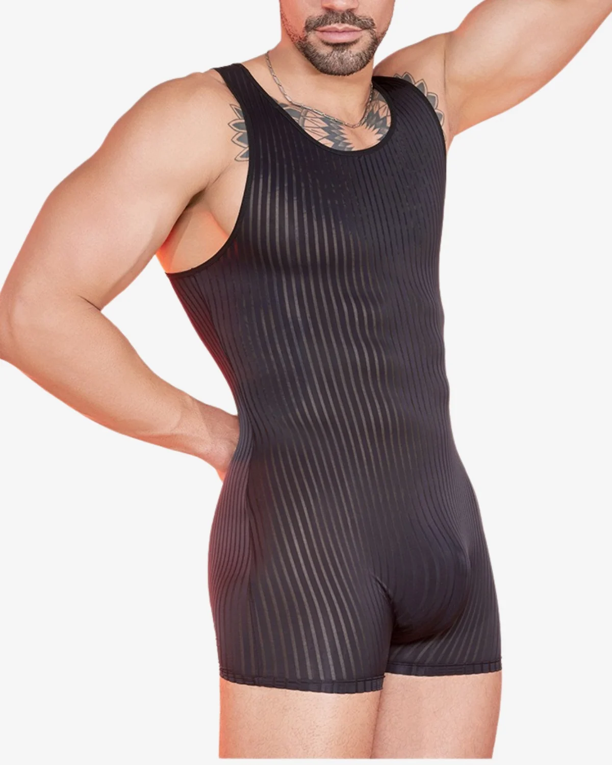 The sexy men’s black mesh singlet wholesale is a sheer-paneled one-piece designed to show off with confidence — and one of the most inventory-friendly styles in the entire Spicy & Shiny range. Constructed from 88% Nylon, 12% Spandex, this singlet combines a supremely soft, skin-close feel with strategic sheer mesh panels that deliver visual drama without sacrificing wearability. The result is a piece your customers will reach for again and again across circuit parties, fetish nights, Pride events, and club nights.