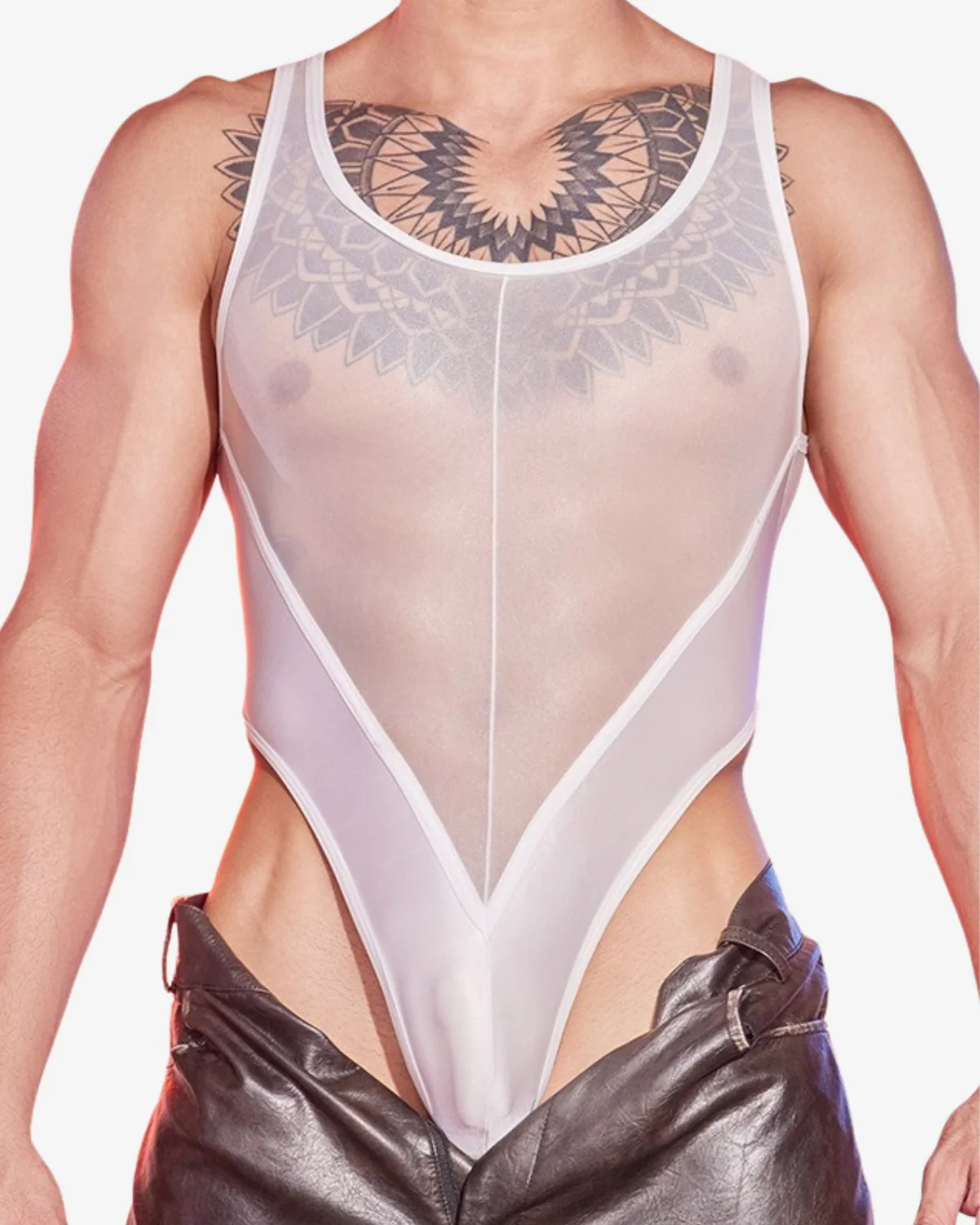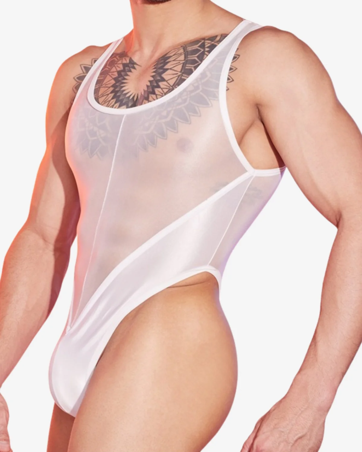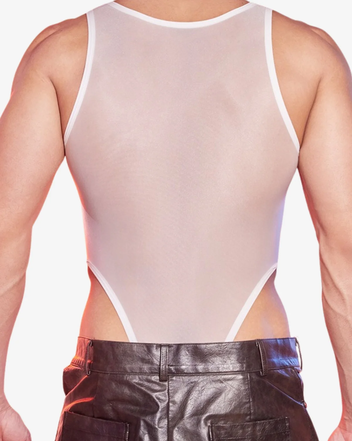 Men’s Sexy White Mesh Thong Bodysuit | Wholesale