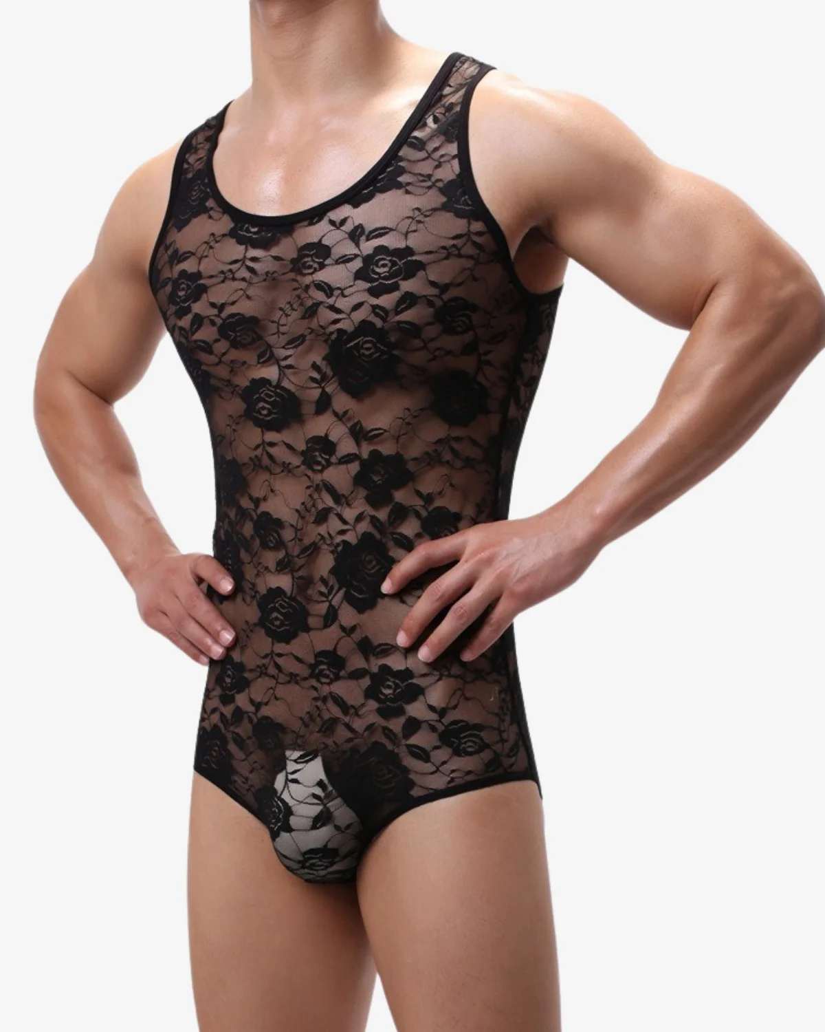 Lace Floral Mesh Bodysuit | Wholesale Men Tops