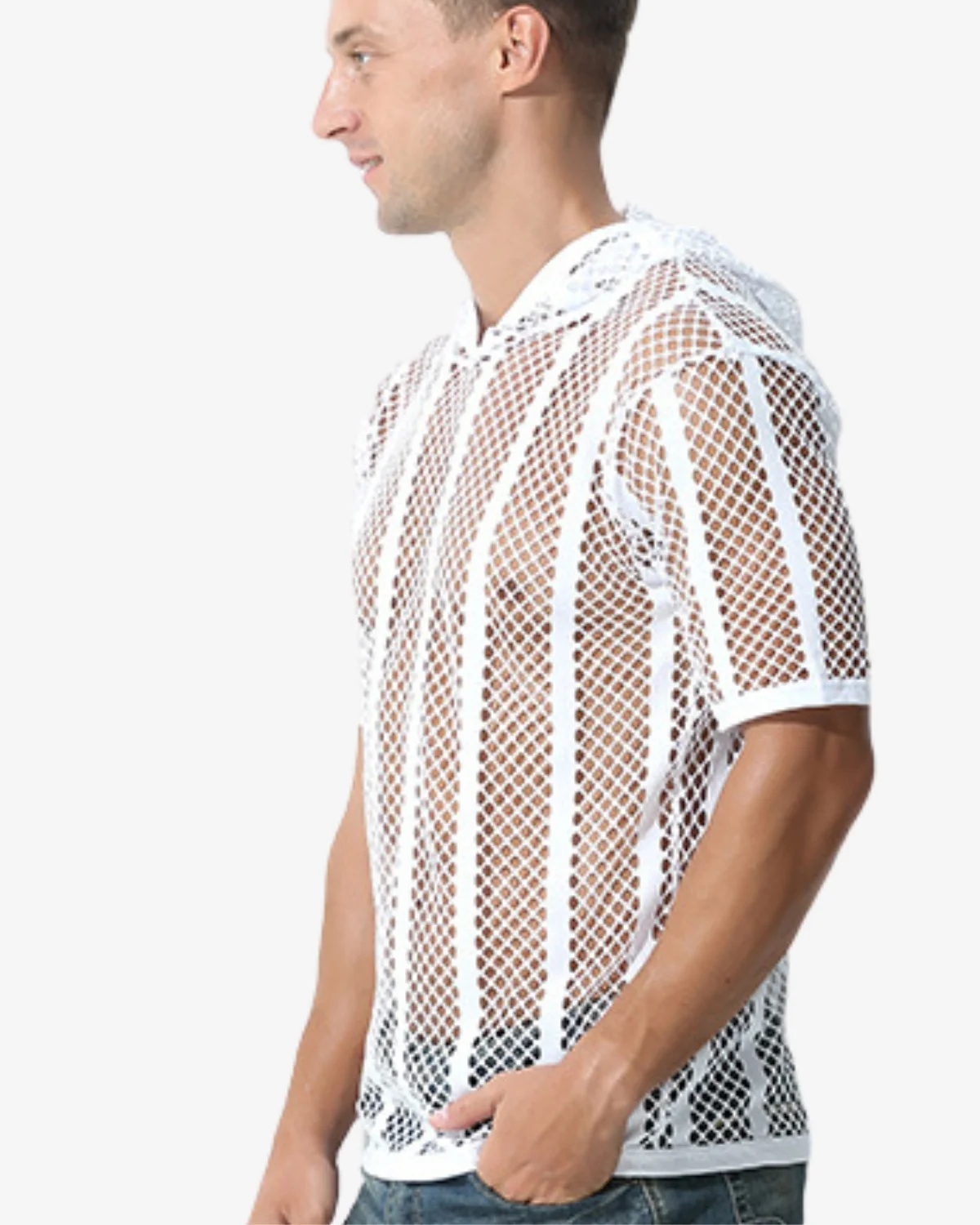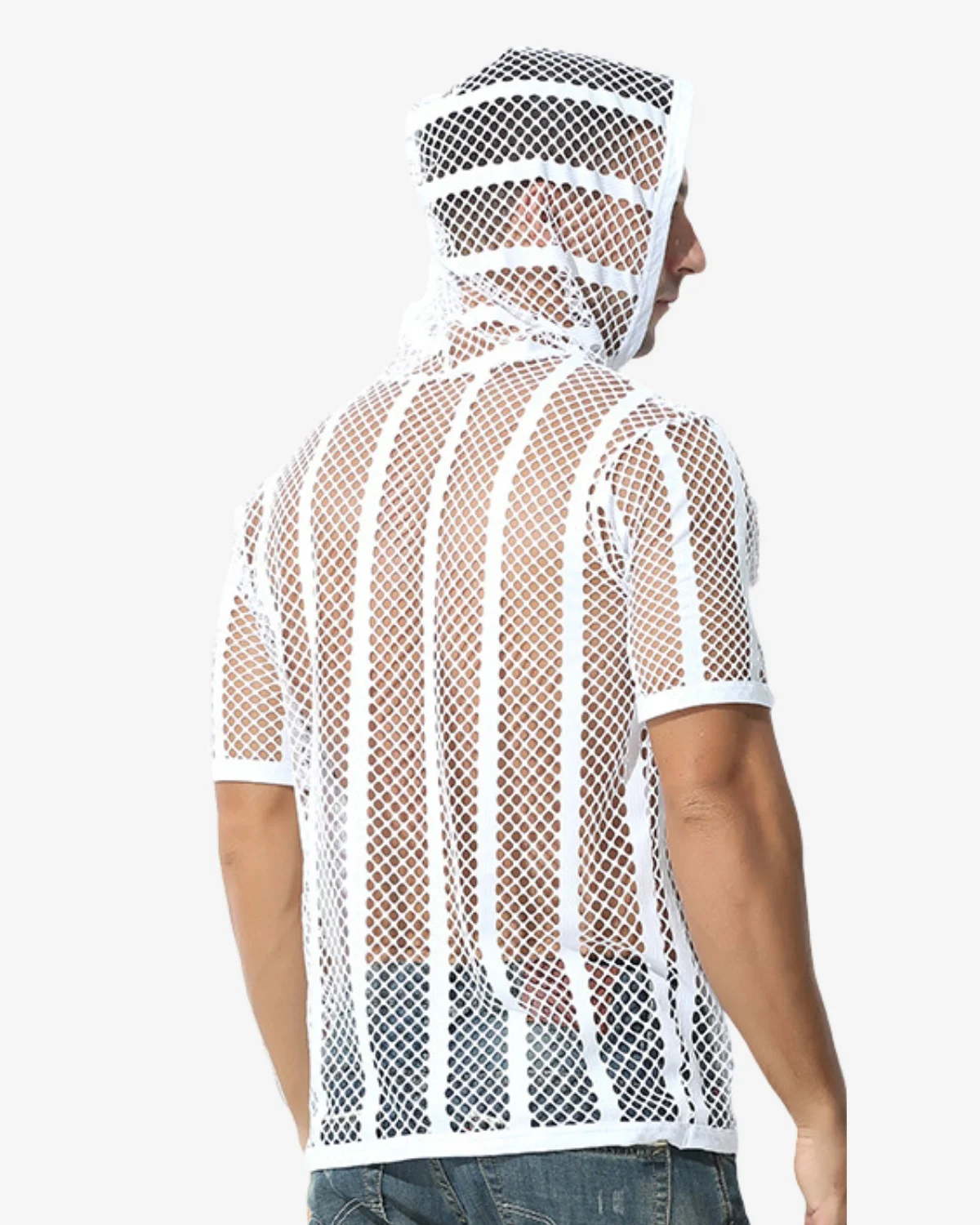 Men’s Mesh Fishnet Hoodie White | Wholesale