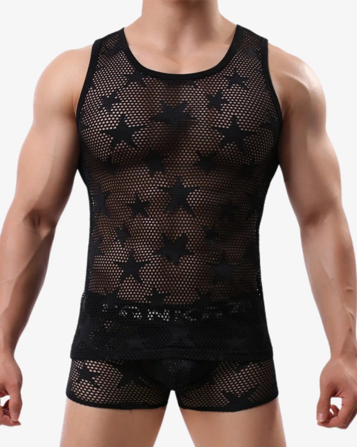 Tags loungewear, men's top, mesh top, tank top, wholesale men tops