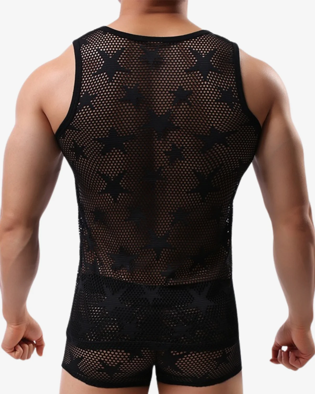 Our Men’s Trendy Mesh Tank Top combines a bold, perforated design with a subtle star pattern woven directly into the fabric. This ultra-lightweight, highly breathable tank is engineered for maximum air circulation and visibility. Featuring a classic ribbed trim, it’s the ultimate statement piece for gym wear, festival outfits, or warm-weather layering.