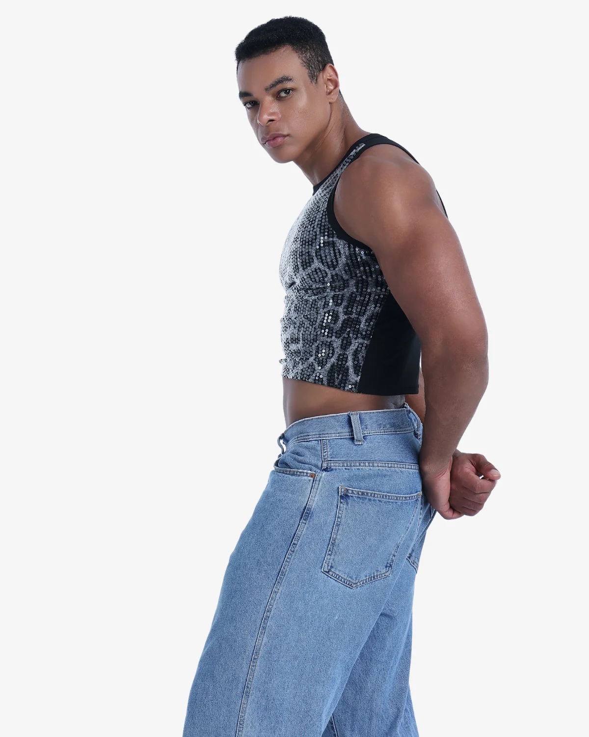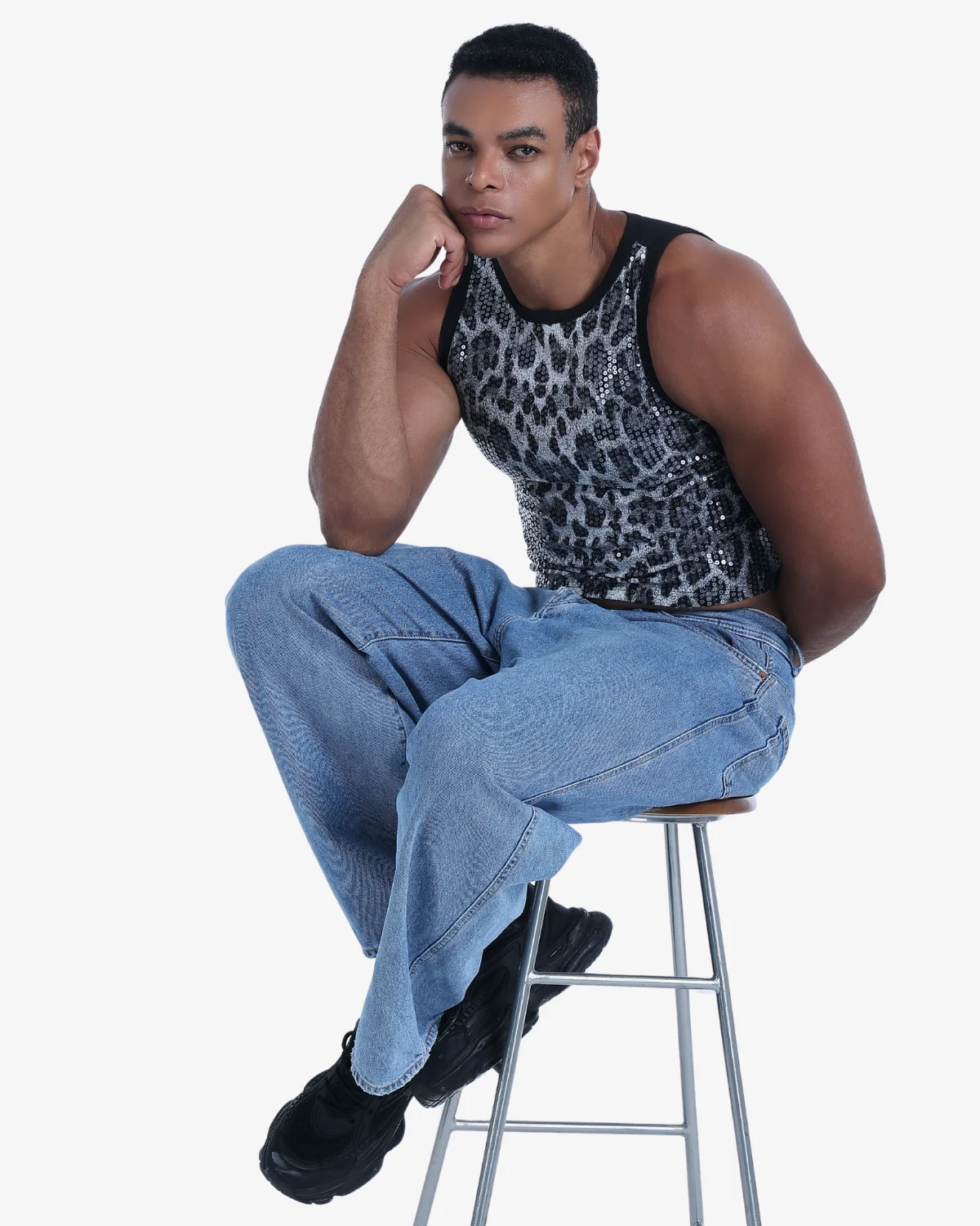 Unleash your inner wild side with our Leopard Sparkly Tank Top! This fierce but fun tank top is designed for guys who aren’t afraid to walk on the wild side, and can be worn as a bold statement piece for a party or layered under a jacket for a hint of untamed style,